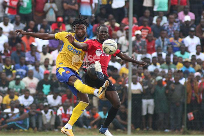 Vipers' Livingstone Mulondo battles for the ball with KCCA's Tshisungu Kankonde /Pulse Sports image