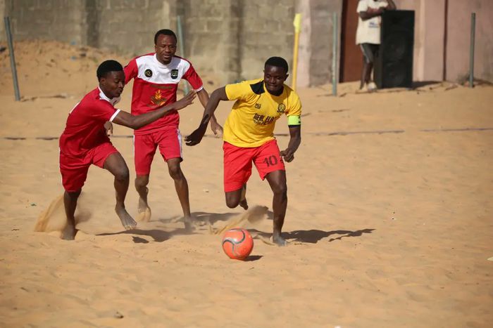 players in action at the kebbi beach soccer