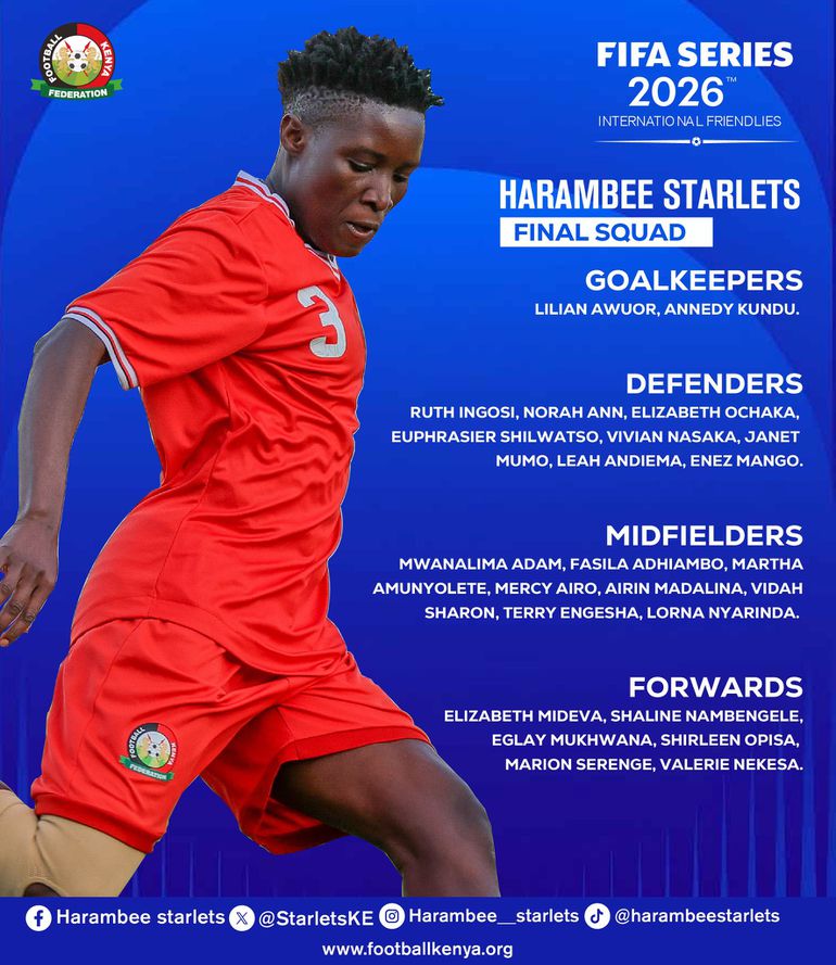 Odemba unveiled a final squad of 24 on Friday and it includes star names like goalkeeper ‎Lilian Awuor, defenders Ruth Ingosi, Enez Mango, midfielders Mwanalima Adam, Fasila Adhiambo, and Martha Amunyolete, and forwards ‎Shirleen Opisa, Marion Serenge and Valerie Nekesa.