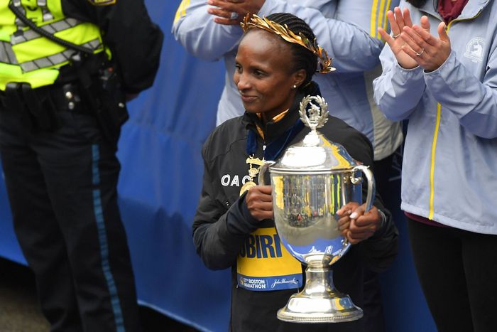 Hellen Obiri after winning the Boston Marathon. Photo: Imago