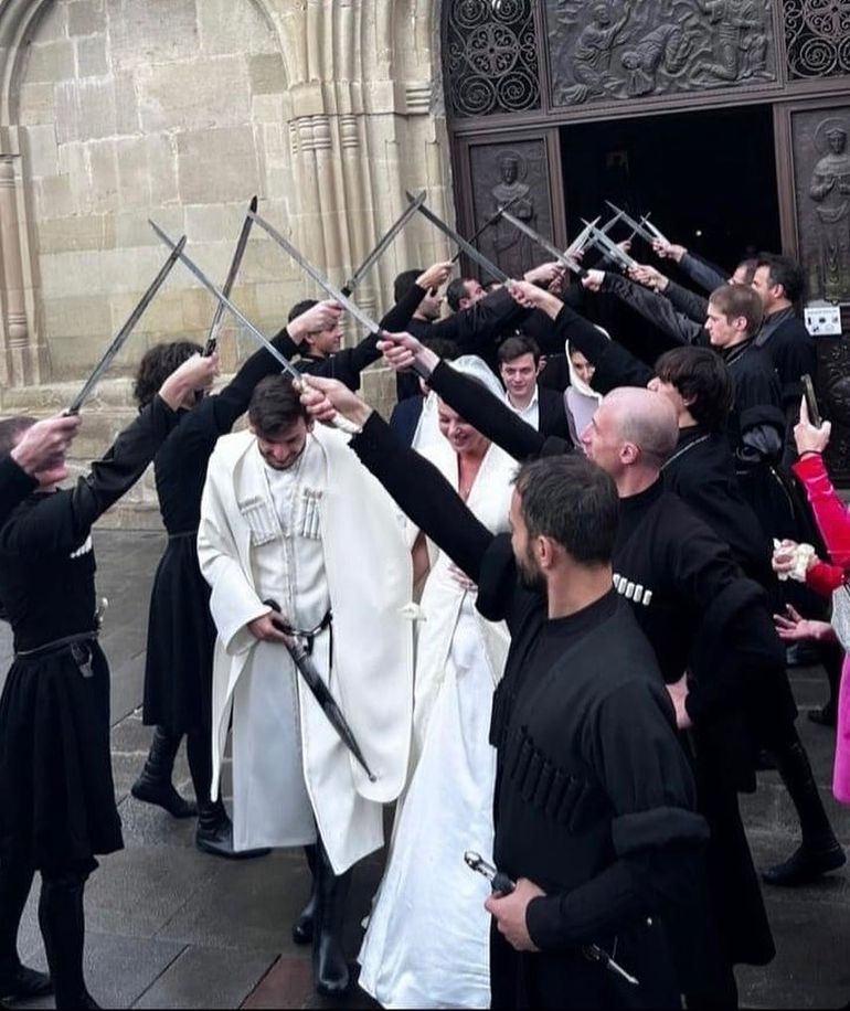 Kvaratskhelia and Tavadze sealed their love in an intimate ceremony at the historic Samtavro monastery in Georgia.