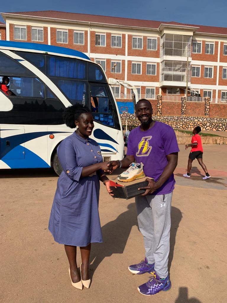 Katabi, who is the FUBA Vice President in charge of Media and Marketing, donated 15 pairs of sneakers to the Kitende basketball team and caught the attention of the man used to giving and not receiving.