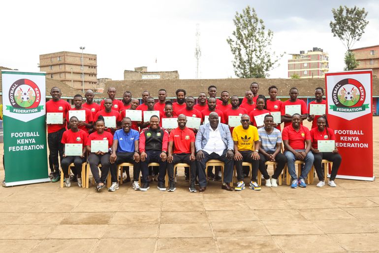 Harambee Stars legendary goalkeeper Francis Onyiso and Nairobi City Stars forward Ezekiel Odera are among the 29 coaches who received their CAF D certificates on Firday, March 24 at the Kariobangi North Primary School.
