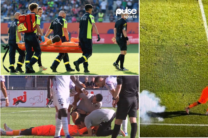 The Ligue match between minnows Montpellier and Clermont Foot was abandoned with mere minutes left after the away side’s goalkeeper, Mory Diaw, was injured by fireworks thrown onto the pitch.