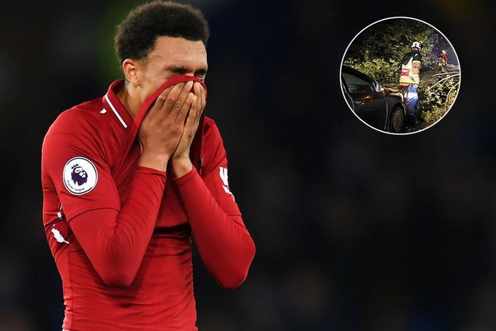 Liverpool right back Trent Alexander-Arnold has survived a shocking ordeal as a 40 foot-long pylon crashed onto a car right in front of his range rover as he was driving on a wet rural road near Knutsford, Cheshire.