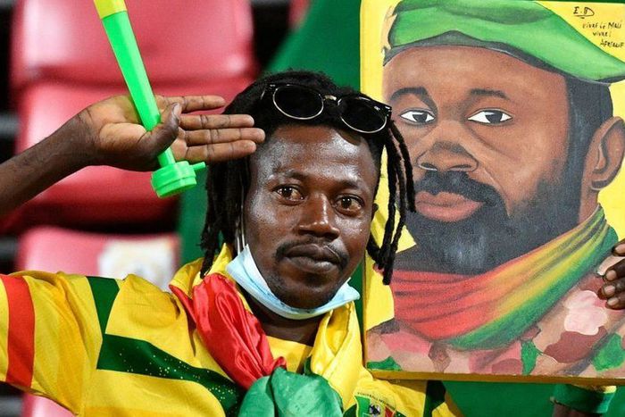 A Mali fan holds up a placcard with the painting of the country's president Assimi Goita | Photo Credit: Courtesy