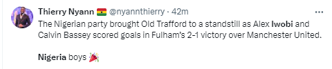 Nigerians react as Iwobi and Bassey help Fulham to victory against Manchester United