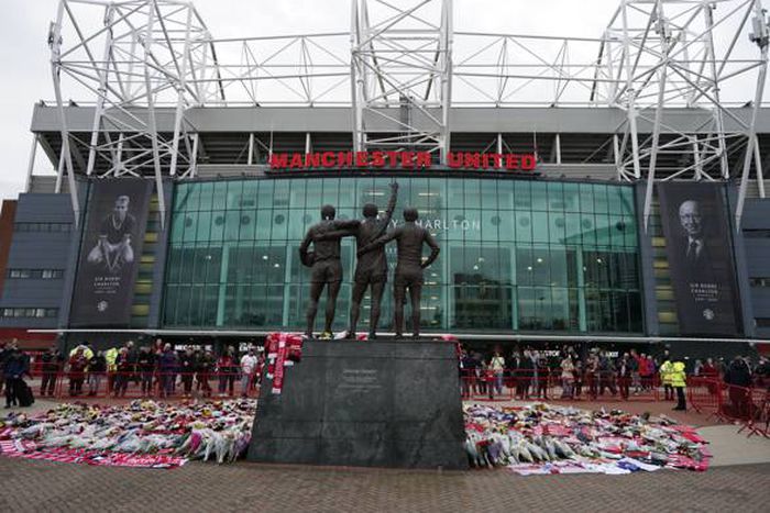 Manchester United's Old Trafford with tributes for Sir Bobby Charlton | Imago