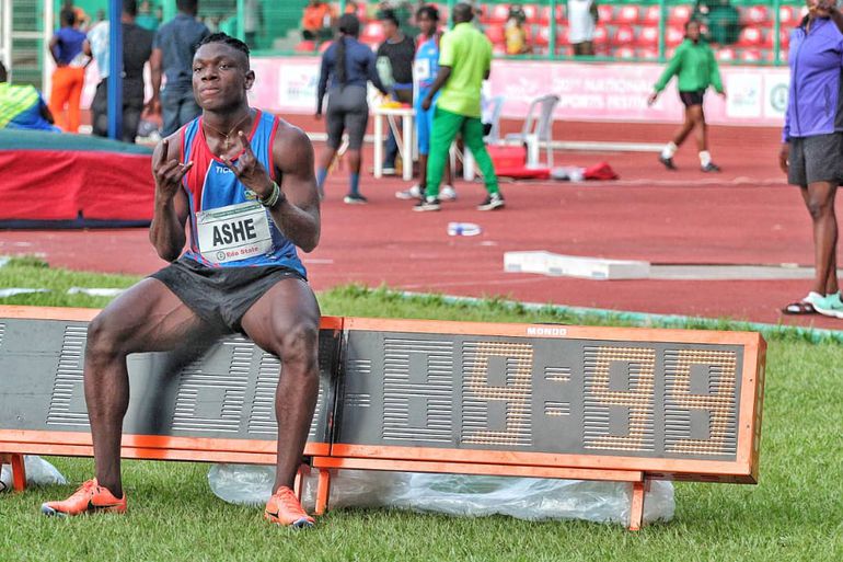 Ashe is 2022 Nigeria's Fastest Man clocking a Championship Record of 9.99s