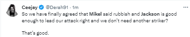 According to most of the reactions, Mikel Only scored six goals for Chelsea while Jackson had 14 just last year.