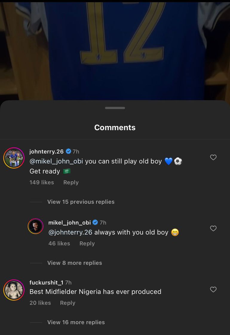 Following the match, Terry sent Mikel a message on Instagram saying that the Nigerian midfielder still has the talent to stay active.