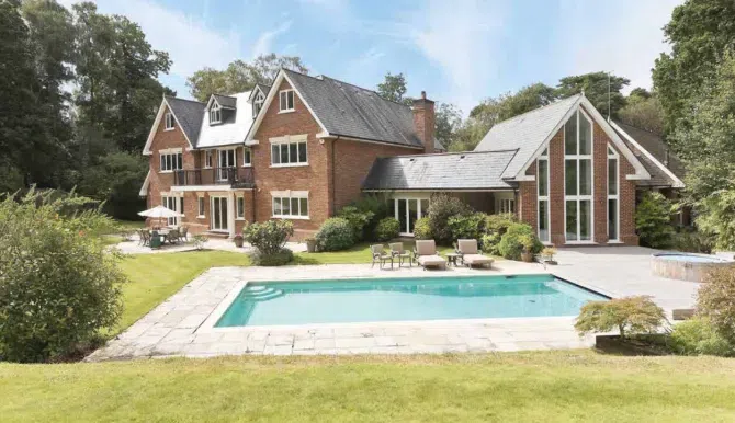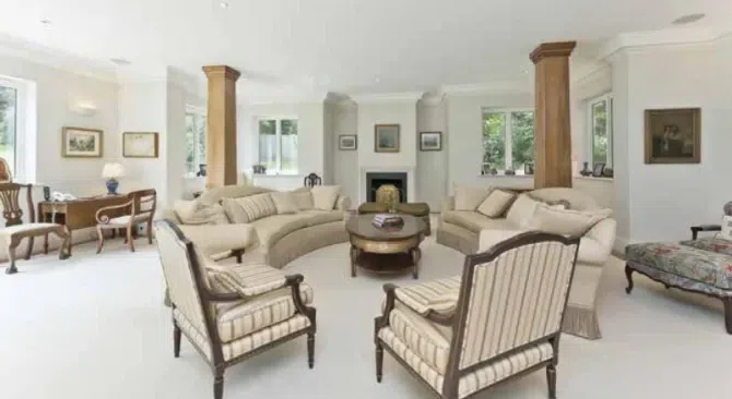 Described as a “generous and welcoming” residence, the mansion boasts eight spacious bedrooms, seven bathrooms, and even an outdoor swimming pool.