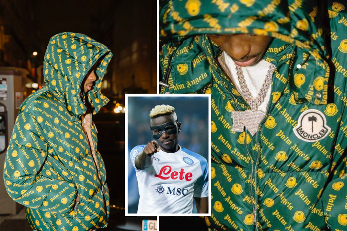Osimhen took to Twitter to show off his expensive piece of jewellery, rocking a multi-million naira diamond necklace and a Moncler Palm Angels Thompson Jacket estimated to cost around N1.8 million ($2435).