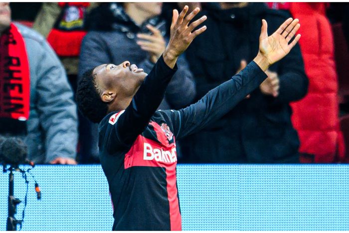 Nathan Tella celebrates in style. (Photo Credit: Bayer Leverkusen/X)