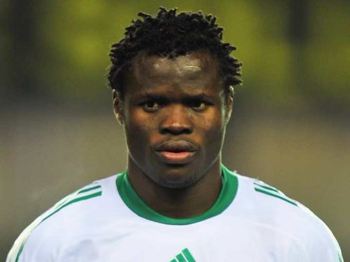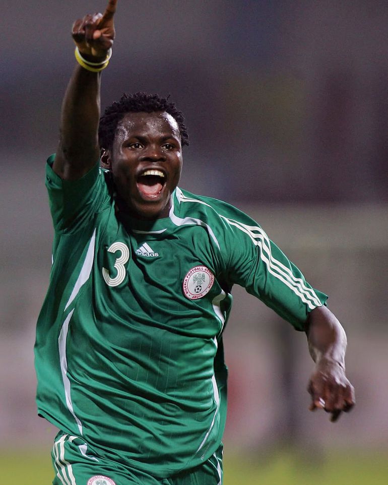 Taye Taiwo celebrates in the Super Eagles colours.