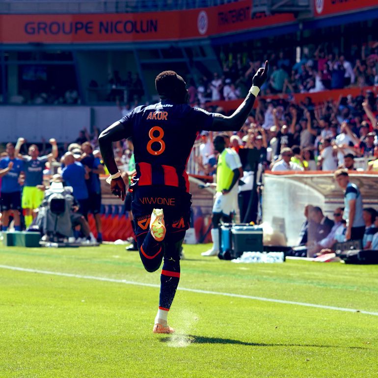 Akor Adams off the mark with a bang for Montpellier in Ligue 1. (Photo Credit: Montpellier/X)