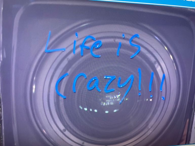 Then he wrote on the camera after his victory. "Life is Crazy."