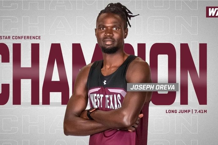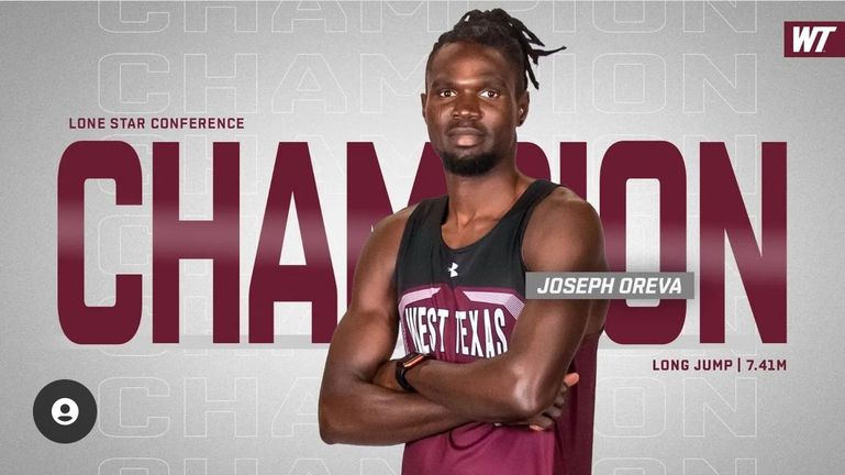 Joseph Oreva won the long jump title at the Lone Star Conference Championships with a distance of 7.41m.