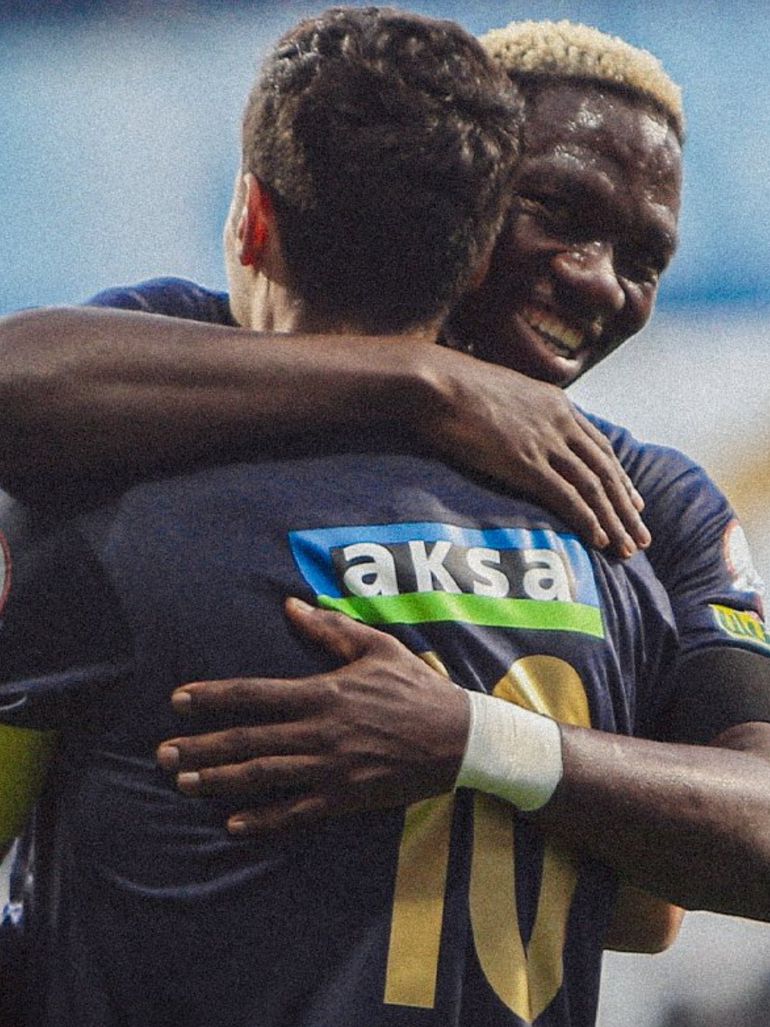 Kenneth Omeruo celebrates one of the Kasimpasa goals with a teammate. (Photo Credit: Kasimpasa/X)