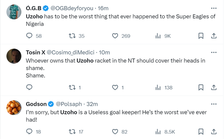 Nigerians are not waiting for the final result and have taken to social media in their numbers to let their displeasure known about Uzoho's continued prominence in the national team.