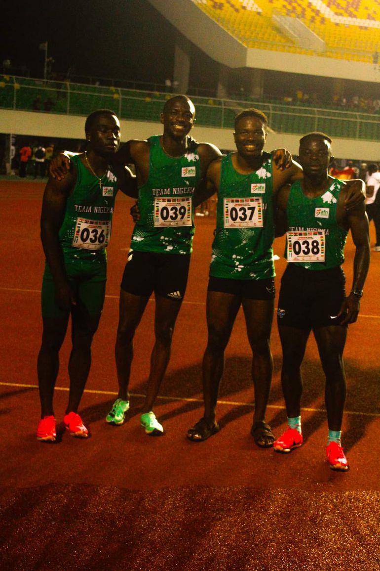The men's 4x100m quartet of Udodi Onwuzurike, Usheoritse Itsekiri, Alaba Akintola, and Seye Ogunlewe clocked a Season's Best time of 38.73s to win the event in Lome.