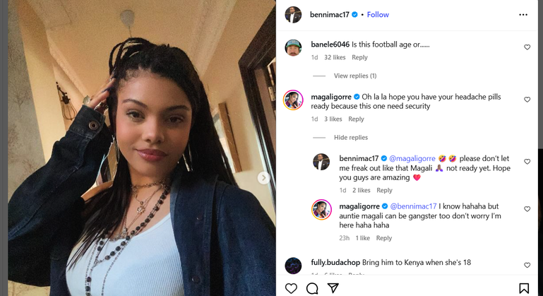 Harambee Stars coach Benni McCarthy has expressed his joy at seeing his daughter turn 17 but seems not ready for what that brings for him and her.