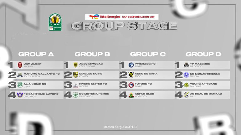 They will now face Ivorian giants ASEC Mimosas, DR Congo's Motema Pembe, and Republic of Congo's Diables Noirs in Group B.