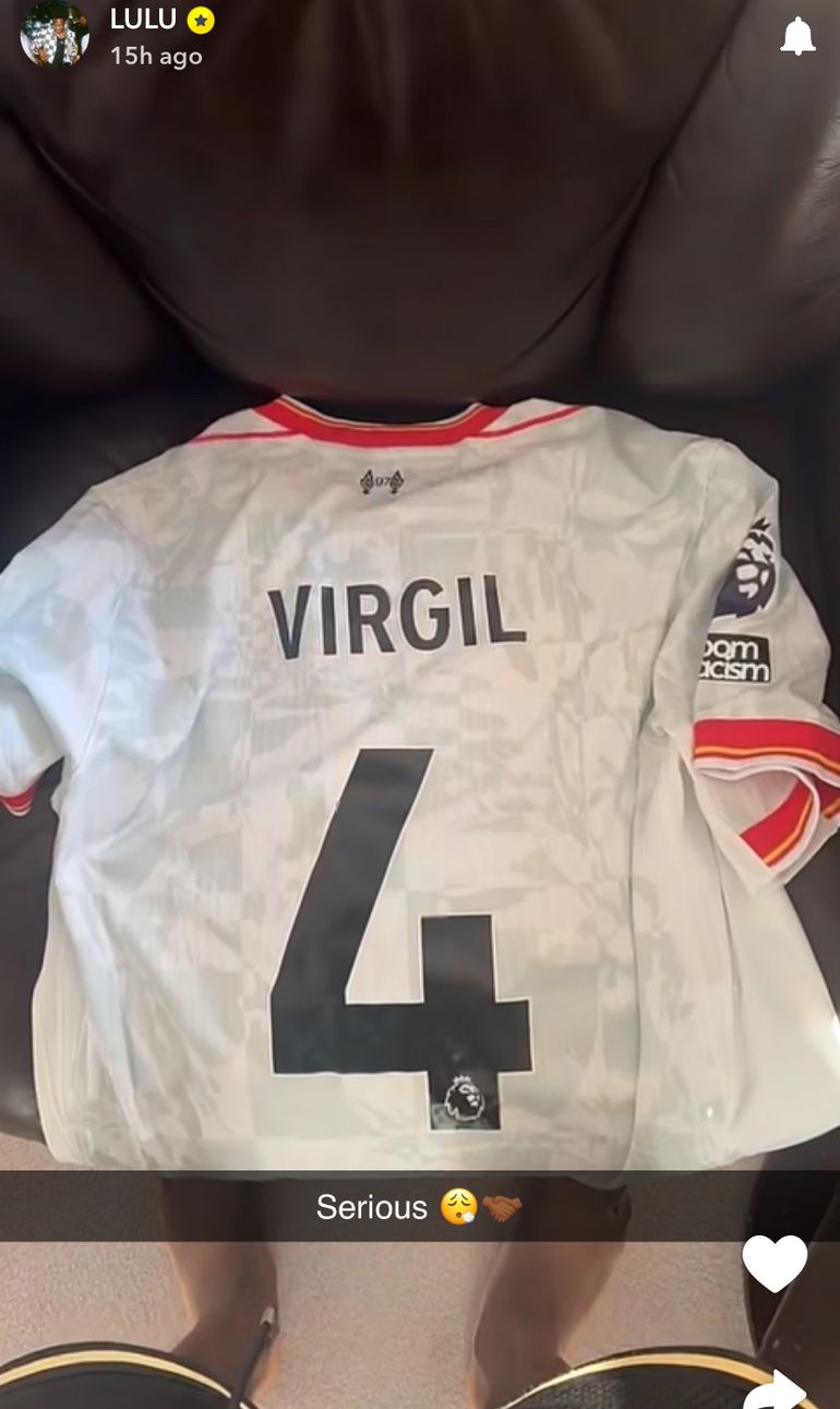 Aina shared a video on his Snapchat showing Van Dijk's matchday shirt, expressing his excitement with the caption "Serious" just 24 hours after the thrilling encounter.