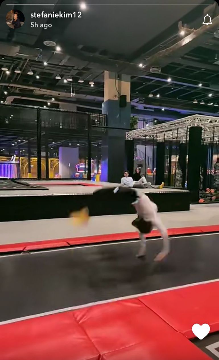 The footage, shared via her official Snapchat channel, shows Stefanie performing a flawless cartwheel routine at a training centre, effortlessly executing the move in front of close friends.