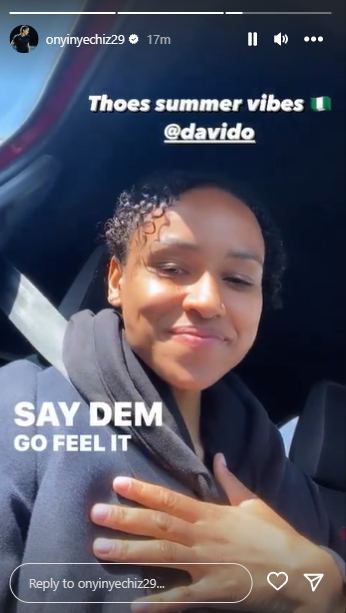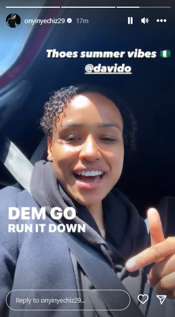 The Germany-based defender took to her Instagram story to post a snap of herself vibing to the lyrics of one of the tracks off the album - ‘Feel’ captioning it with a message that read: “Those Summer Vibes @davido”.