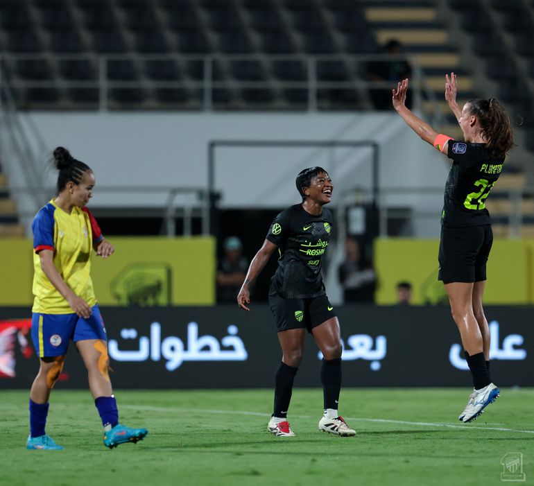 Super Falcons versatile defender Ashleigh Plumptre turned occasional goal-scorer for Al-Ittihad, opened the scoring with a stunning strike early in the game, setting the tone for what would become a one-sided affair.