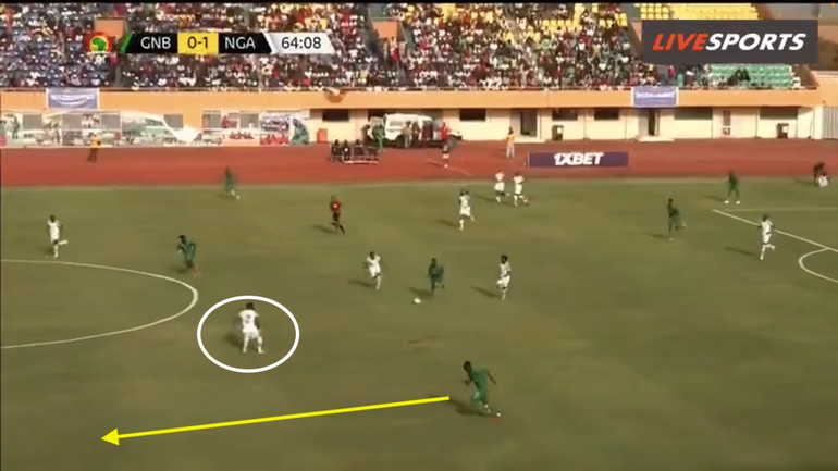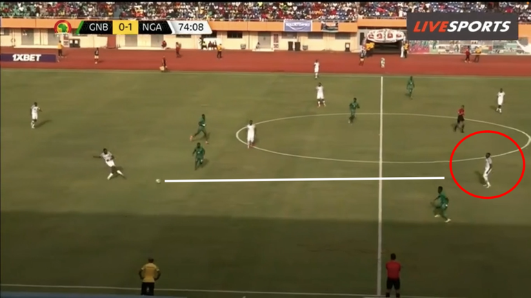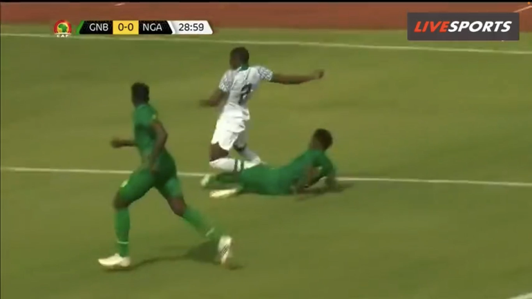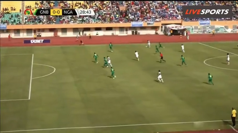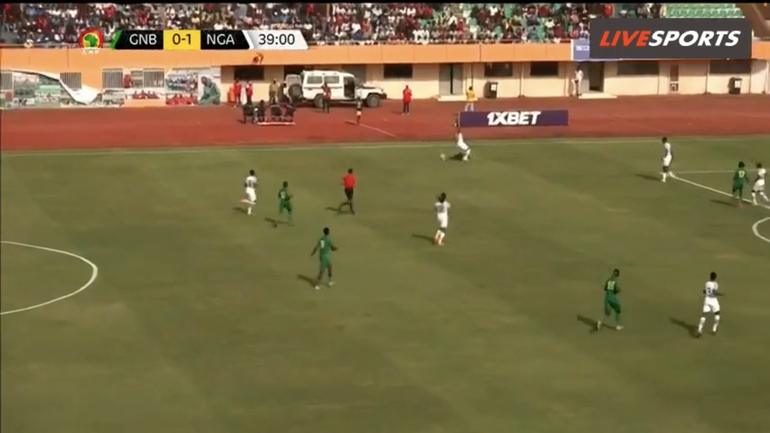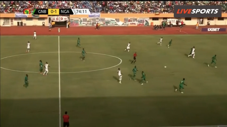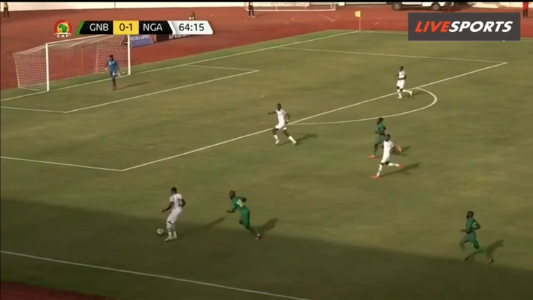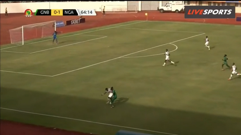 He consequently passes to Chukwueze, who is isolated with Piqueti, but the Villarreal winger fails to take advantage of the Super Eagles’ favourable situation.