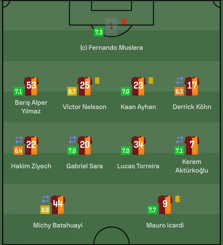 Galatasaray manager, Buruk, is known for his tactical flexibility, often switching between a 4-2-3-1 and a more aggressive 4-4-2 formation, particularly at home.