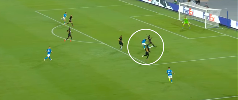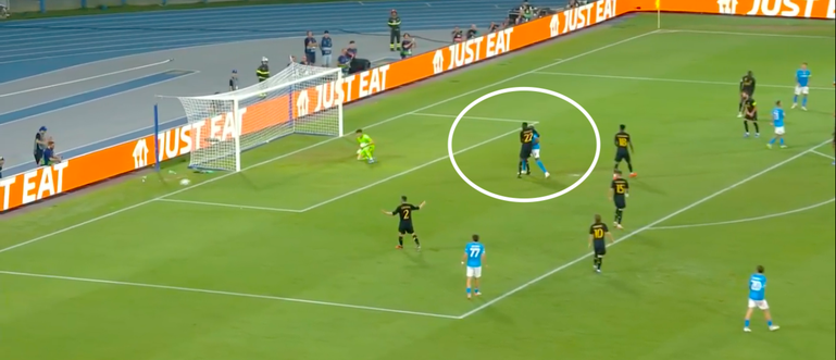 That much was evident when the Partenopei’s centre-forward had a 13th-minute attempt blocked by the German centre-back, who quickly closed down the striker’s effort...