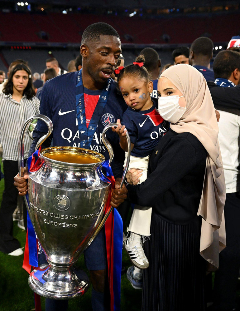 Celebrating alongside Dembélé on Saturday night in Munich was his wife, Rima Edbouche.