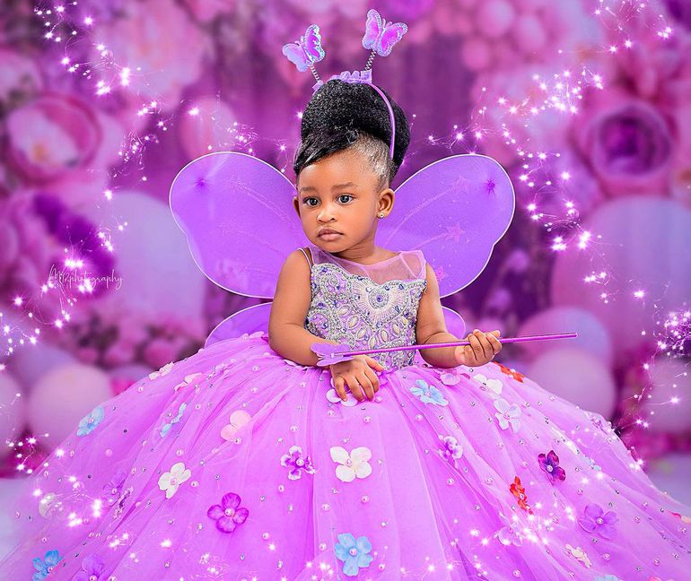 On Wednesday, July 26, Olayinka posted photos of his daughter Gemma in a purple outfit.