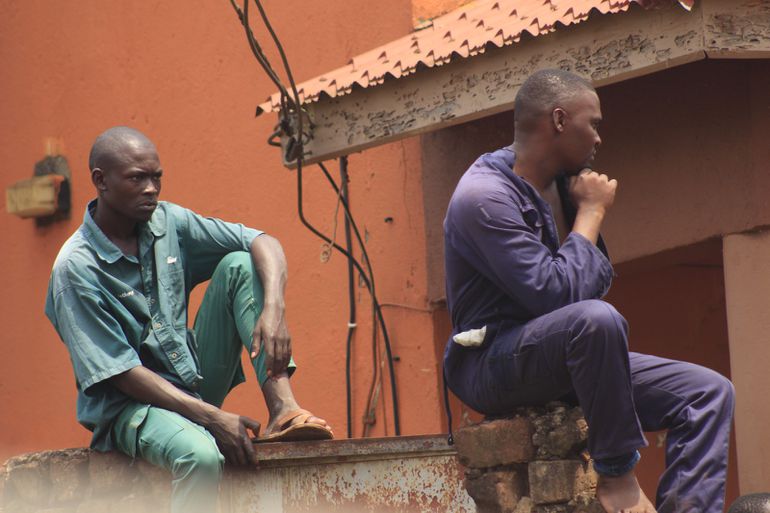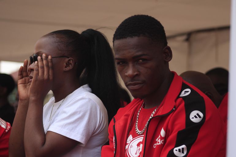 A member of the Bombers looks on during the preparations of the Bombers celebrations in Kawaala
