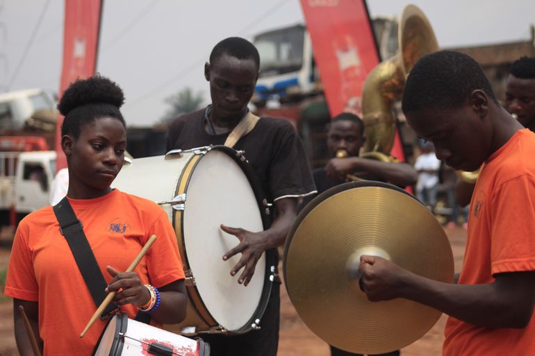 The Bombers having a stroll around Kawaala accompanied by the marching band