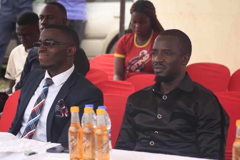Mr. Andrew Ssebunya (left) sitted next to Uganda Boxing Federation, Mr. Moses Muhangi (right) during the Bombers celebrations held in Kawaala
