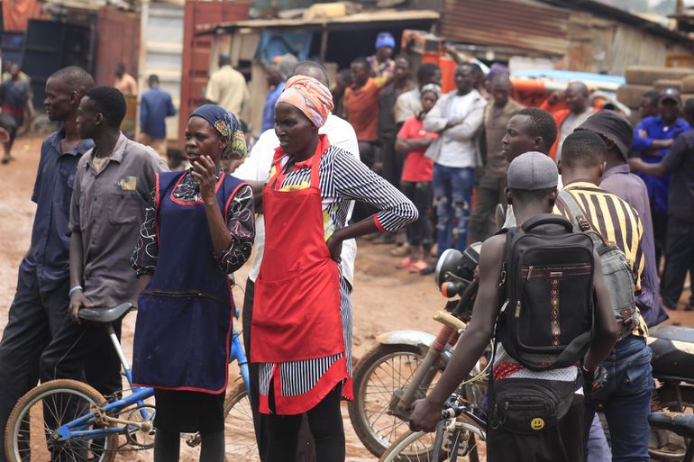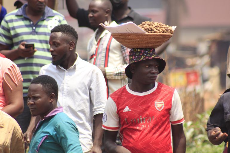 A groundnuts hawker looks on as the Bombers party was brought to Kawaala