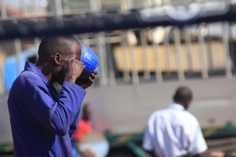A boost of energy was needed on this occasion as someone from the Bombers delegations takes in Sting; a big sponsor for Ugandan basketball