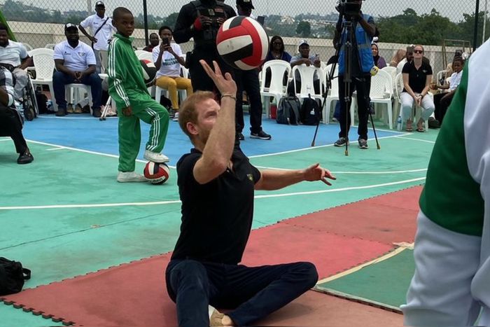 Prince Harry as you have never seen him: Duke of Sussex plays sit-down volleyball during Nigeria visit