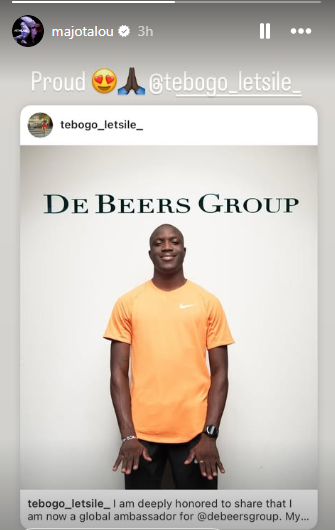 Africa's fastest sprinters in history Akani Simbine and Marie Jose Ta Lou-Smith have openly celebrated Letsile Tebogo on his new endorsement with renowned diamond company De Beers Group.