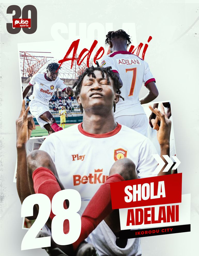 Shola Adelani comes in at No. 28, as he was instrumental in Ikorodu City's Nigeria Premier Football League (NPFL) debut season, scoring 12 goals and providing 2 assists.