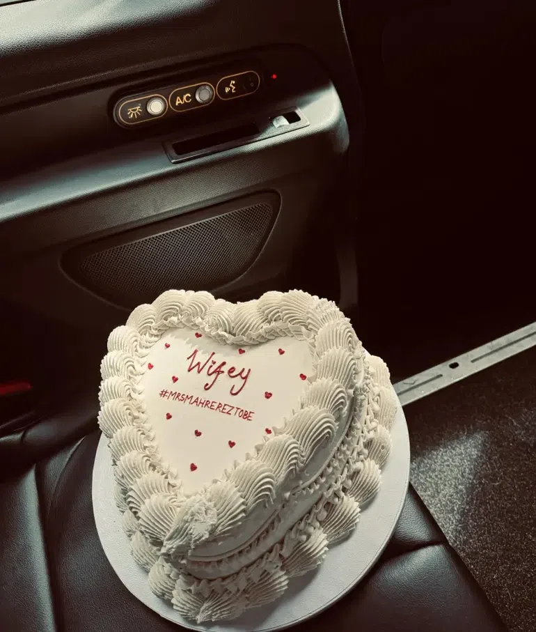 Taylor posed in a glamorous white dress alongside her friends as she also showed off a heart-shaped cake with the message that read:Â Â "Wifey: #MrsMahrezToBe".