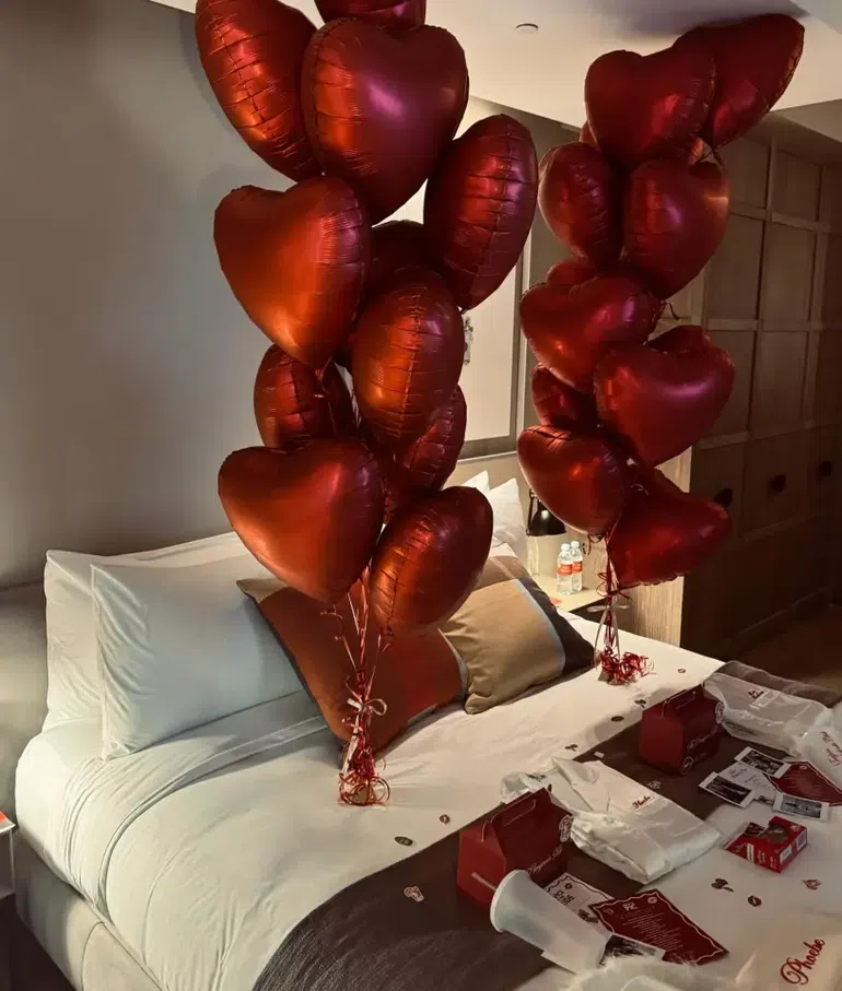 She also shared a snap of her bed decorated with heart shaped balloons.