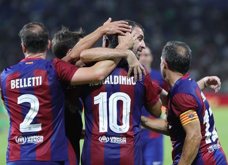 Ronaldinho shines for Barcelona Legends in 5-1 win against Maccabi Haifa