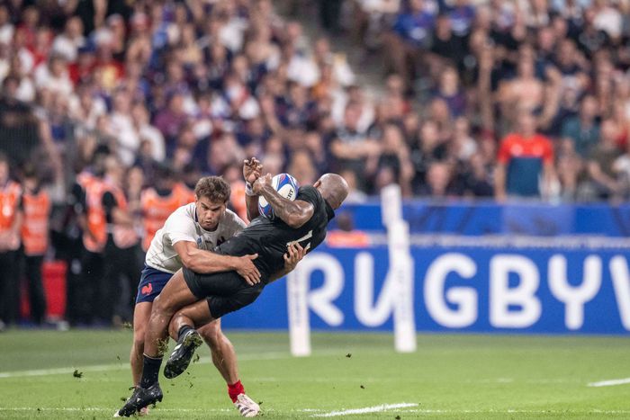 Telea’s second try, from Richie Mo’unga’s floated pass, put New Zealand back in front but after Damian Penaud was denied a try by Mo’unga’s tackle, France seized the momentum.