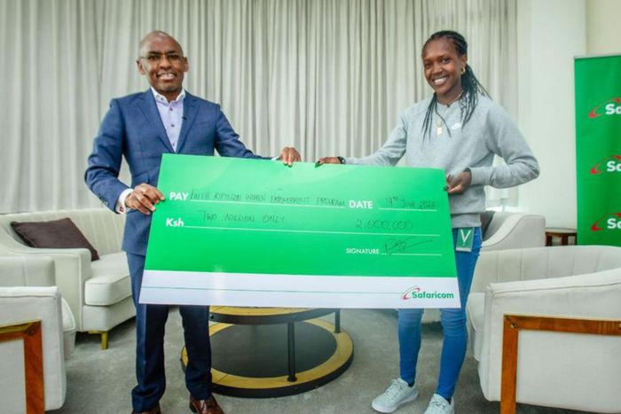 Telecommunications giant Safaricom has rewarded athlete Faith Kipyegon for her remarkable achievement of breaking two world records within a span of one week.
