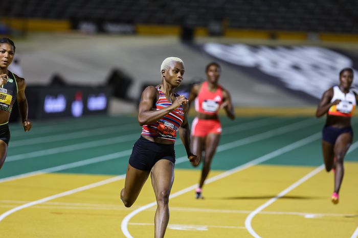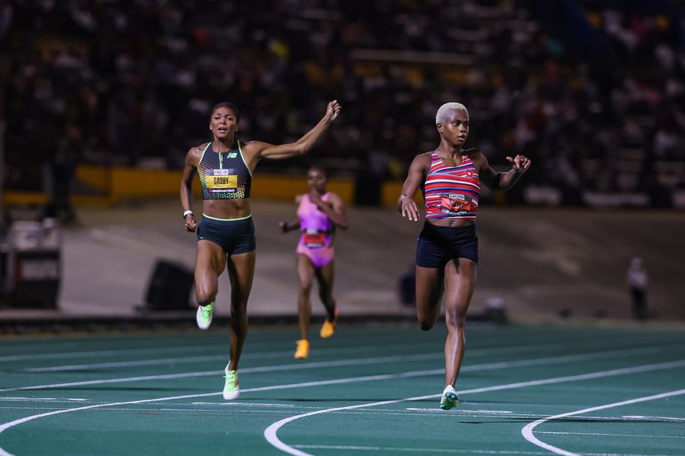 OLYMPIC 200M CHAMP GABBY THOMAS BEATS OLYMPIC 400M CHAMP MARILEIDY PAULINO IN THE 400M TO WIN $100,000!!! 😱 @itsgabbyt pic.twitter.com/ikd1oLutWk